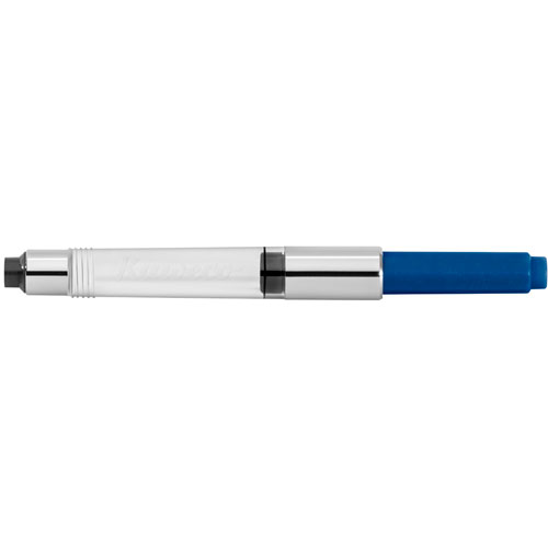 Nuestro convertidor estándar azul medianoche con elementos cromados es compatible con todas nuestras plumas estilográficas largas. En lugar de dos cartuchos de tinta, el convertidor se inserta en el cuerpo de la pluma.Esto facilita el llenado de tinta de un tintero. Al rellenar varias veces seguidas, aumenta la cantidad.Una gran ventaja de los convertidores es sobre todo el aspecto de la sostenibilidad:A diferencia de los cartuchos de tinta convencionales, que terminan en la basura después de usar la tinta, estos pueden reutilizarse permanentemente y rellenarse una y otra vez.Combina especialmente bien con nuestra tinta Kaweco en azul medianoche.