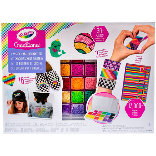 Decora todo lo que se te ocurra con estas piedritas efecto pixel. Encontrarás 13 colores de gemas. 3 brazaletes para decorar, 3 hojas adhesivas para colocar en cualquier superficie, 2 hojas con patrones, 1 hoja para estilo libre, una libreta para que expongas tus creaciones, además de su pegamento y charolita de trabajo.