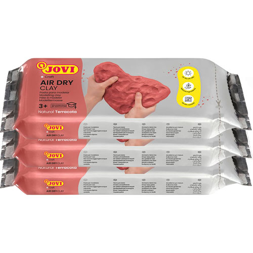 Jovi Air Dry es una pasta de modelar de tacto fresco y agradable; la pasta se presenta húmeda y es muy fácil de moldear.Se puede utilizar para cubrir diferentes superficies como madera, plástico, cartón, vidrio o metal.Se seca al aire en 24 horas, dependiendo del grosor de la manualidad.El acabado es fino y suave y se puede decorar con cualquier tipo de pinturas de base agua, acrílicas, rotuladores especiales o barníz.Después, sólo hay que dejarla secar al aire de forma natural durante 24 horas, evitando tener que trabajar con hornos a alta temperatura.