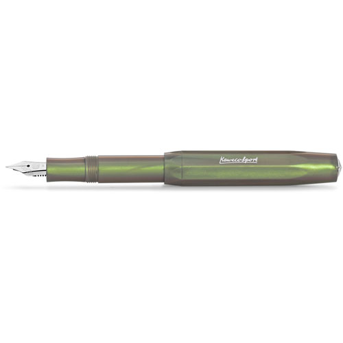 Pluma Fuente Fina KWC Lunar Sport Shadow Green 0.5 mm La Pluma Fuente Fina KWC Lunar Sport Shadow Green 0.5 mm forma parte de la familia Kaweco Sport, reconocida por su diseño compacto y su caracteristica forma octagonal que aporta estabilidad y comodidad durante la escritura. Esta linea destaca por su construcción en plástico de alta calidad y una estética moderna que se refleja en sus colores suaves y contemporáneos. Su tamaño portátil —aproximadamente 10.5 cm cerrada— facilita llevarla a cualquier lugar, manteniendo la ergonomia ideal para el uso diario. El plumin fino, fabricado con precisión alemana, ofrece un trazo suave, uniforme y confiable, adecuado para escritura detallada, notas rápidas o tareas de oficina. El tono Shadow Green distingue a esta versión de la serie Lunar Sport, aportando un aspecto fresco, minimalista y versátil. Es una opción ideal para quienes buscan una pluma fuente con estilo moderno, materiales de calidad y desempeño constante en cada trazo.