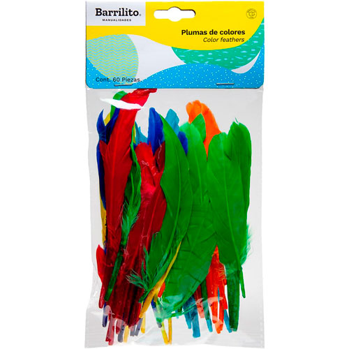 Plumas De Colores Barrilito Bolsa Con 60 Piezas