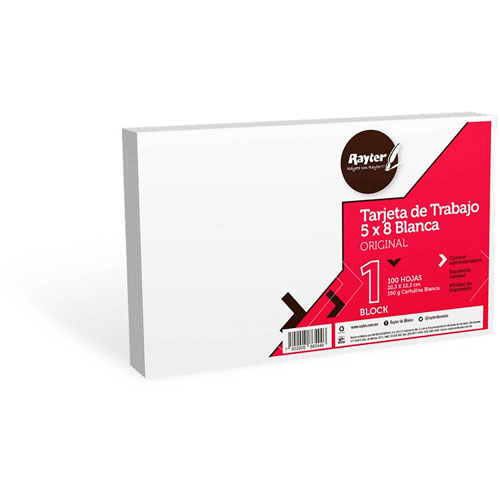 - Tarjeta Rayter 5x8 pulgadas blanca.